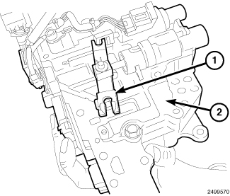 14. This sets the pulley ratio linkage (1) in position on the valve body (2).