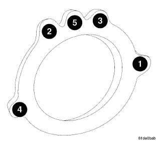 4. Tighten the catalytic converter-to-turbocharger nuts to 26 Nm (230 in. lbs.) in the pattern shown.