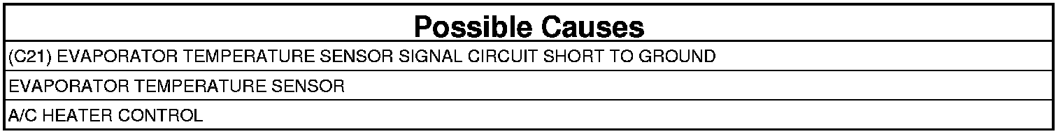 - Repair the (C21) Evaporator Temperature Sensor Signal circuit for a short to ground.