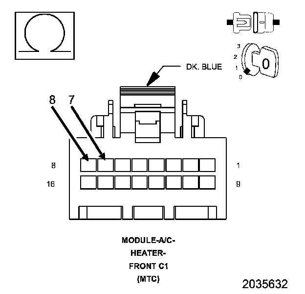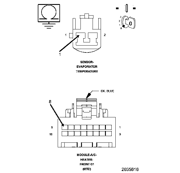The Evaporator Temperature Sensor voltage input to the A/C Heater Control is equal to or below 0.9 volts for a continuous period of 1.2 seconds. If the A/C Heater Control detects a valid voltage, the Diagnostic Trouble Code (DTC) will change from active to stored and will stay stored for 100 ignition cycles.