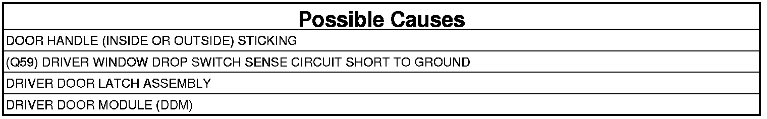 - Repair the (Q59) Driver Window Drop Switch Sense circuit for a short to ground.