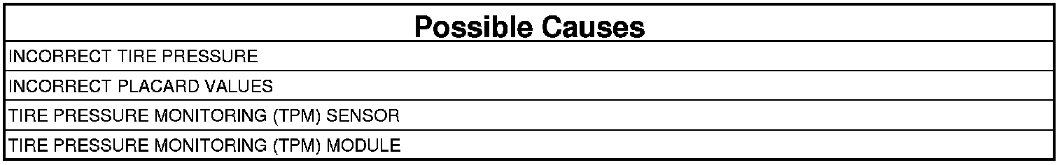 NOTE: The following tests are used to locate the TPM Sensor that is setting the low pressure fault. If the tires have been rotated, the TPM Sensor is no longer in sequence from the factory. Faults are linked to the TPM Sensor ID's. You MUST locate the TPM Sensor that set the fault before continuing.