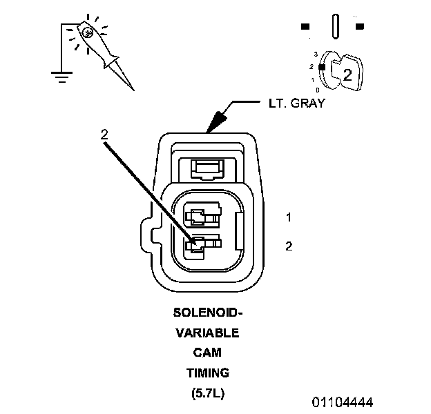 3. Using a 12-volt test light connected to 12 Volts probe the (K442) VCT Control circuit in the VCT Solenoid harness connector.