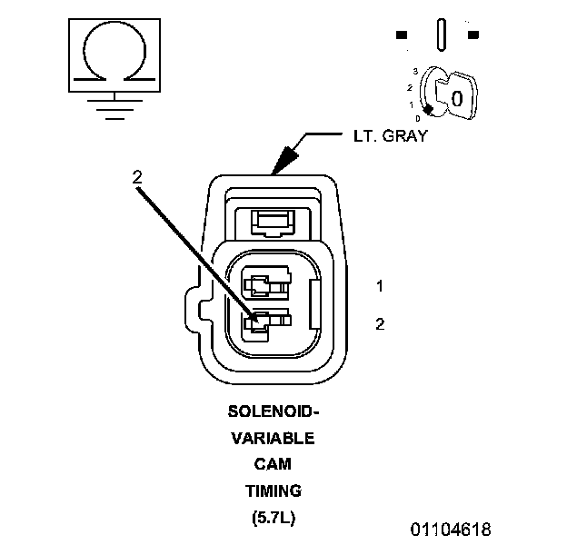 2. Measure the resistance between ground and the (Z904) Ground circuit at the VCT solenoid harness connector.