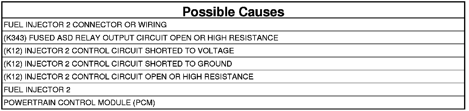 - Repair the short to ground in the (K12) Injector 2 Control circuit.