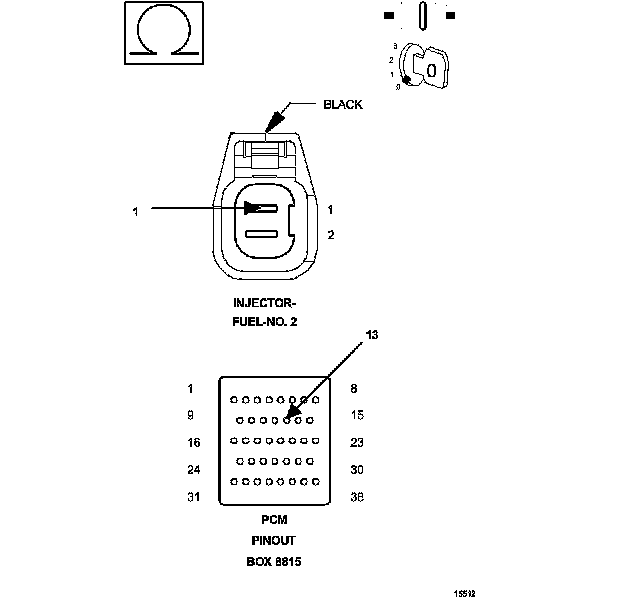 1. Using the wiring diagram/schematic as a guide, inspect the wiring and connectors between the Fuel Injector 2 and the Powertrain Control Module (PCM).