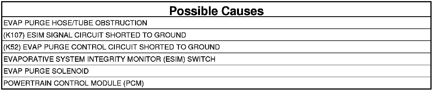 - Repair the short to ground in the (K52) Evap Purge Control circuit.
