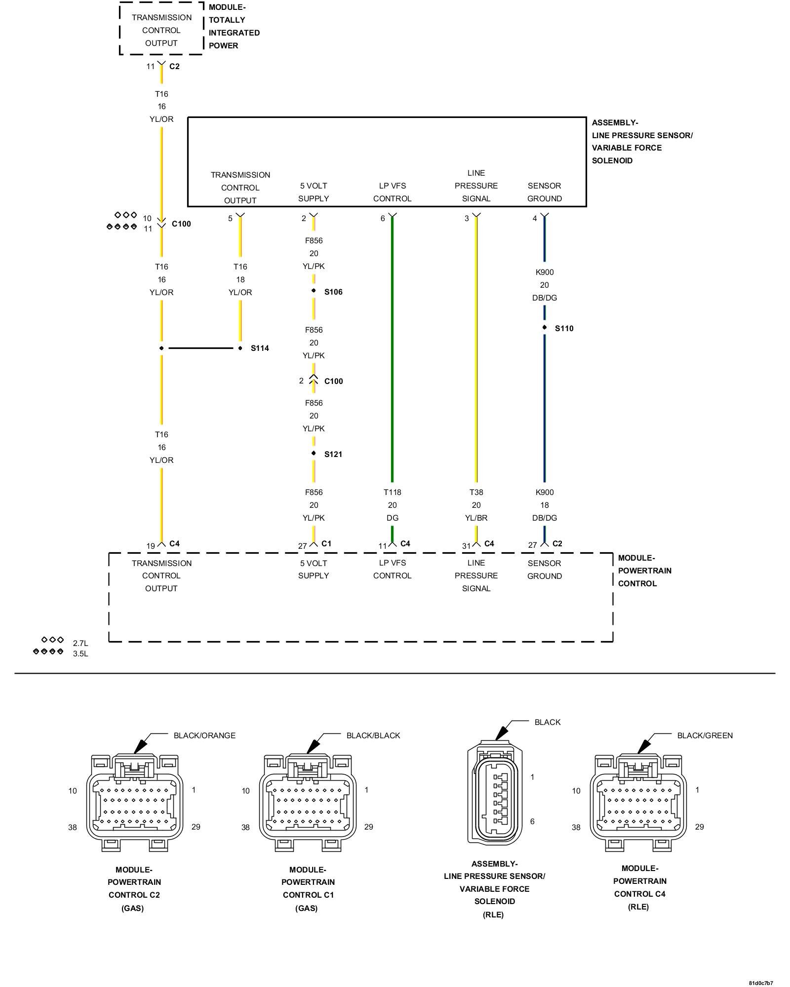 - Disconnect and properly reconnect the Line Pressure Sensor/Variable Force Solenoid Assembly connector. Inspect terminals and repair as necessary.