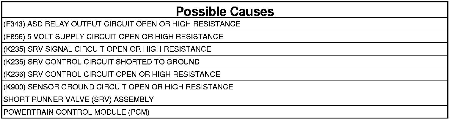 1. Measure the resistance of the (K236) SRV Control circuit between the Short Runner Valve Assembly harness connector and the appropriate terminal of PCM Pinout Box 8815.
