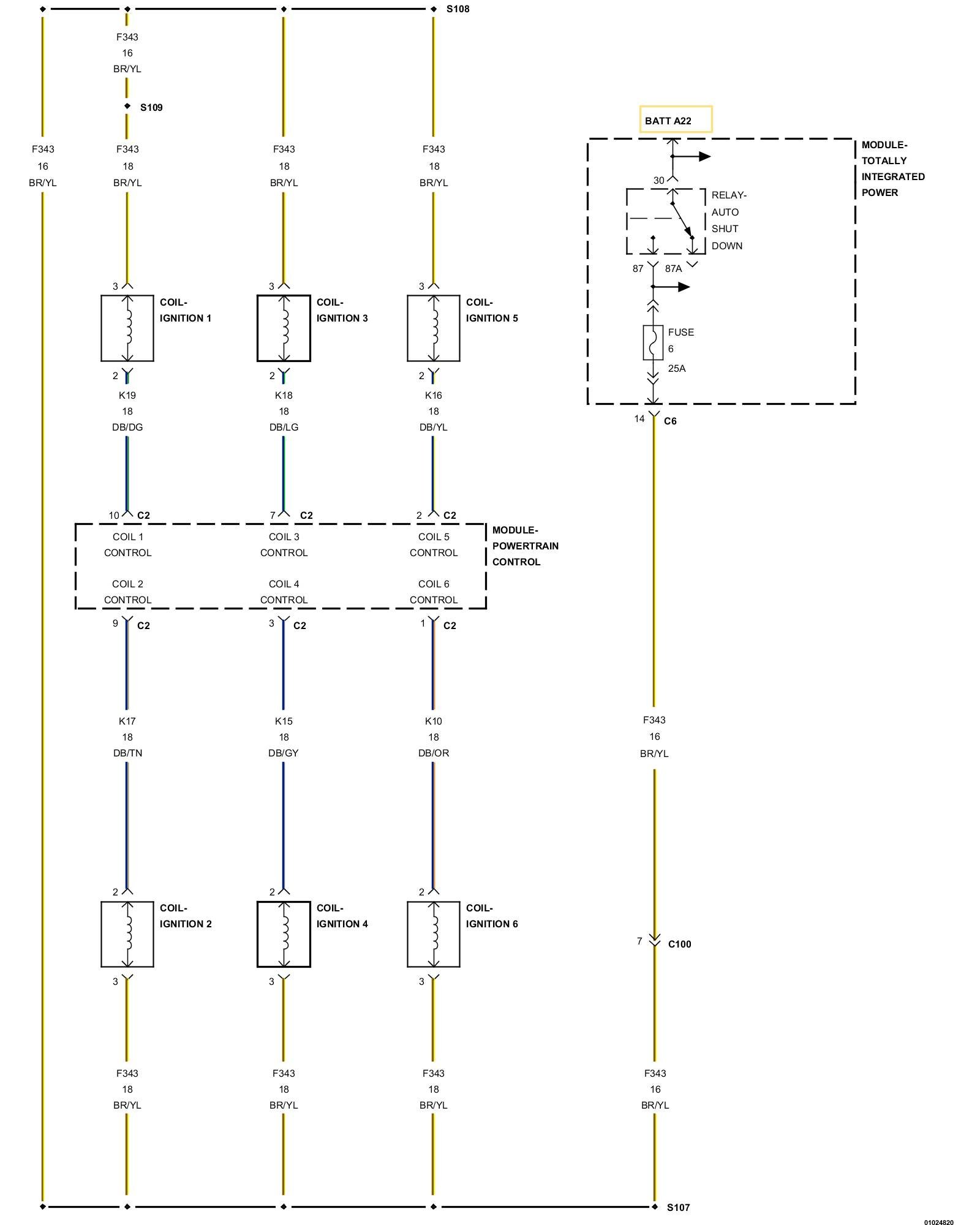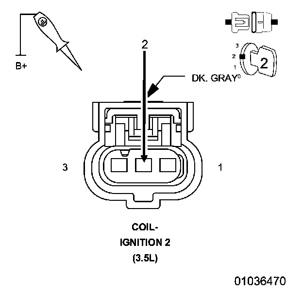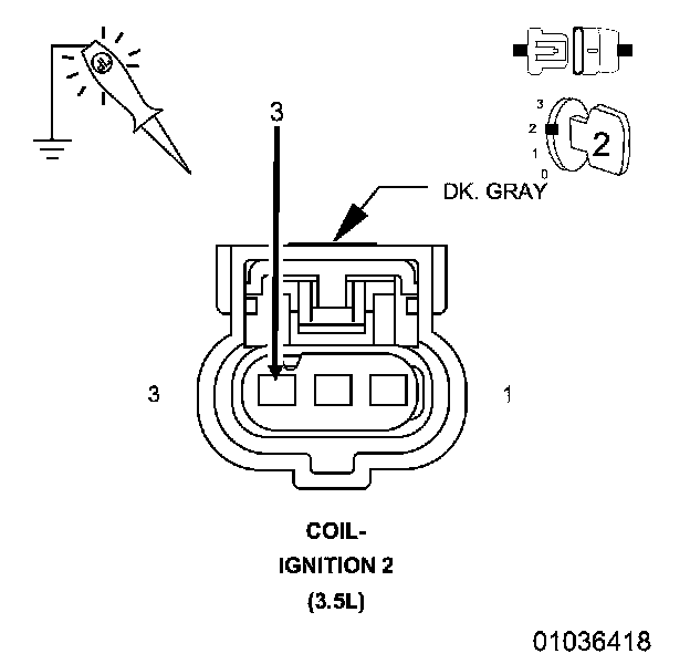 5. Using a 12-volt test light connected to ground, check the (F343) Fused ASD Relay Output circuit in the Ignition 2 Coil harness connector.