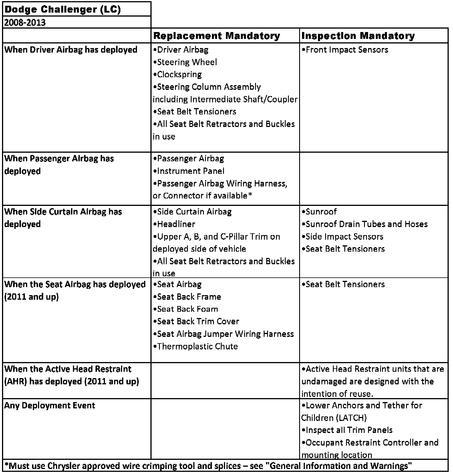 Supplemental Restraint System Post Deployment Inspection & Replacement Matrix