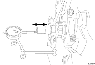 4. Move crankshaft all the way to the front and read the dial indicator. Crankshaft end play must be within specification Engine - Specifications.