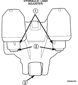 Rocker arms are made of light weight permanent mold aluminum alloy with a roller (3) type follower operating against the camshaft. The valve actuating end of the rocker arms are machined to retain hydraulic lash adjusters, eliminating the need for manual valve lash adjustment.