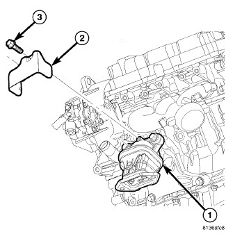 8. Remove the bolts (3) and the left mount heat shield (2).