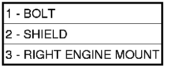 8. Remove the bolts (1) and the right mount heat shield (2).