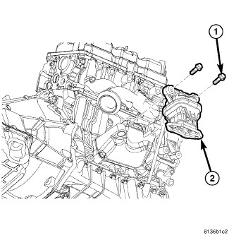9. Remove the bolts (1) and the right engine mount (2).
