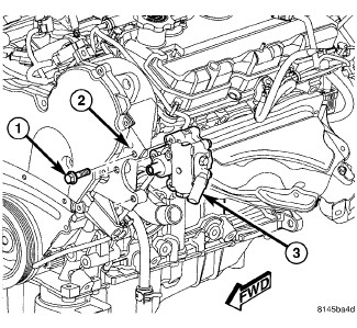 30. Install the power steering pump (3) to the engine bracket (2) with three mounting bolts (1) through access holes in the pulley. Tighten the bolts to 28 Nm (21 ft. lbs.).