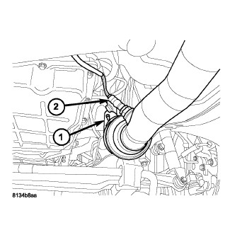 37. Install the two remaining engine to transmission housing mounting bolts (2) accessible from below the vehicle and tighten to 68 Nm (50 ft. lbs.).