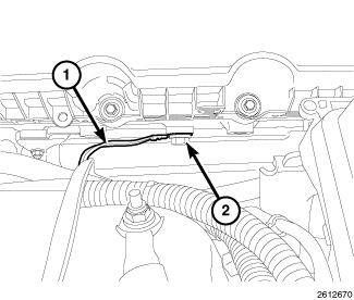 18. Connect the electrical connector to the coolant temperature sensor (2).