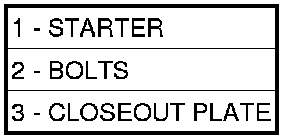 40. Install the starter (1) and closeout plate (3) . Starter - Installation