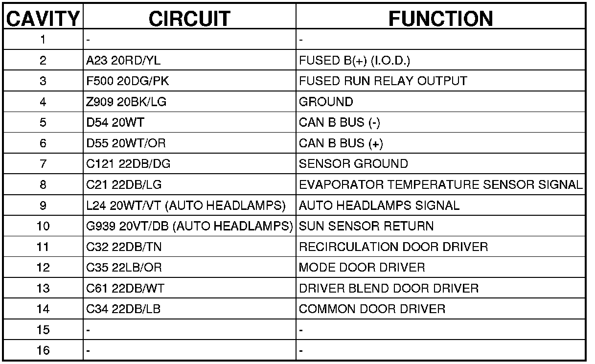 Front A/C-Heater Module C1 (Instrument Panel) 16 Way