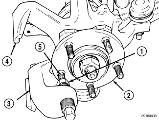 3. Access and remove front brake rotor. Brake Rotor - Removal