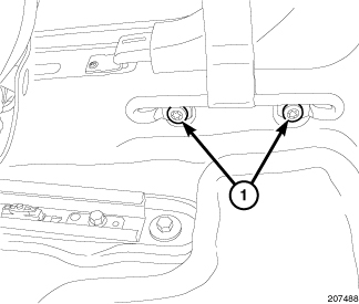 6. Install the two lower seat belt anchor bolts (1).