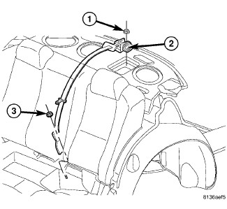 3. Install the nut (3) to the seat belt lower anchor. Tighten nut to 34 Nm (25 ft. lbs.).