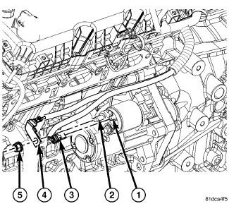 4. Connect electrical connector (3) to starter solenoid terminal (1).