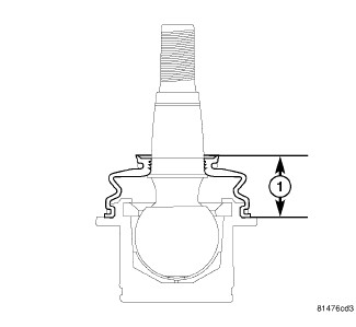 - Measure ball joint seal boot height (1) making sure it is within specification.