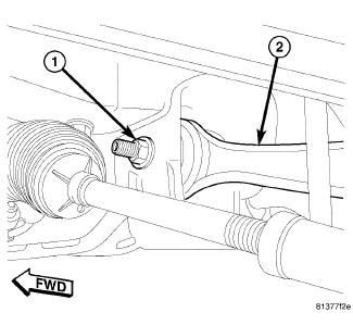 NOTE: If installing a lower control arm engine cradle bolt that is a wheel alignment adjustment bolt (1) (lengthwise grooved shaft (2)), make sure to install it in the same position which it was in upon removal. For more details on installation of this special bolt, Service and Repair .