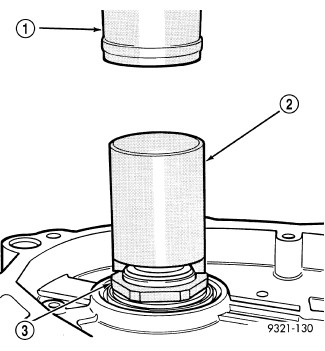 17. Install shim (1) on output shaft (2). Apply small amount of petrolatum onto the shim to hold it in place. Use the original shim as a starting point. If original shim is not available, use the thickest shim available.