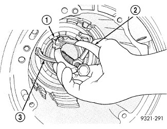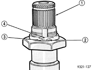 54. Using a die grinder or equivalent, grind the stakes (4) in the shoulder of the shaft nut at locations (2 and 3). Do not grind all the way through the nut and into the output shaft (1). There are two stakes on each nut.