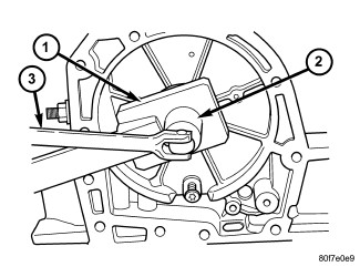 NOTE: Verify that Compressor Tool 5058A (1) is centered properly over the 2/4 clutch retainer (4) before compressing. If necessary, fasten the Compressor Tool 5058A bar to the bellhousing flange with any combination of locking pliers and bolts to center the tool properly.