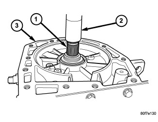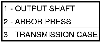 58. Remove the output shaft (1) from case (3) using a shop press (2).