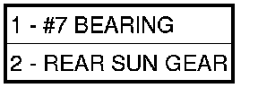 43. Remove the rear sun gear (2) and #7 needle bearing (1).