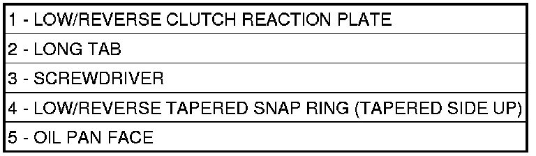 70. Remove low/reverse piston retainer (1)