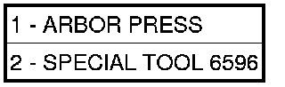 59. Use Remover 6596 (2) with a shop press (1) to remove the front output shaft bearing cup.