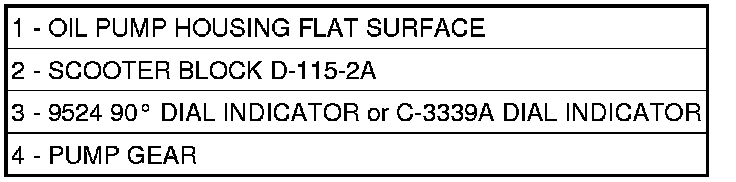 6. Zero the Dial Indicator (3) in the scooter block assembly on a flat surface (1) of the pump housing.