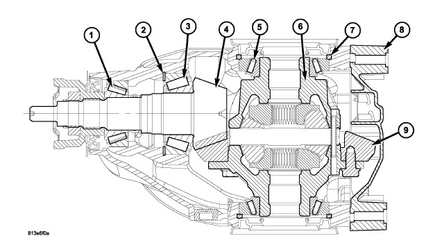 The 198 MM RII (Rear-Independent-Iron) axle is an independent assembly with a cast iron housing and differential. The 198 MM RII uses an open differential which is supported by two tapered roller bearings located on either side of the case. Differential bearing preload and ring gear backlash are controlled with select snap-rings located on the outside of the differential bearing cups. Pinion height is set with a select shim located under the rear pinion bearing cup.