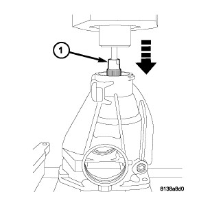 8. Move axle housing to press and press out pinion shaft (1) as shown.