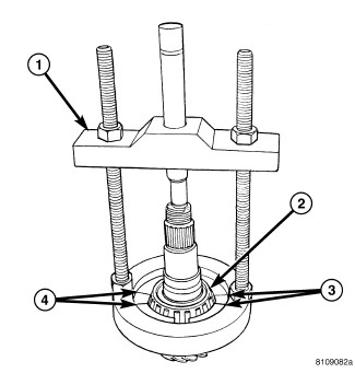 10. Remove pinion head bearing (2) with Puller/Press C-293-PA (1) and Adapters C-293-37 (3,4).