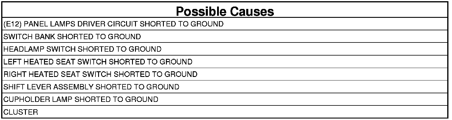 - Repair the (E12) Panel Lamps Driver circuit for a short to ground.