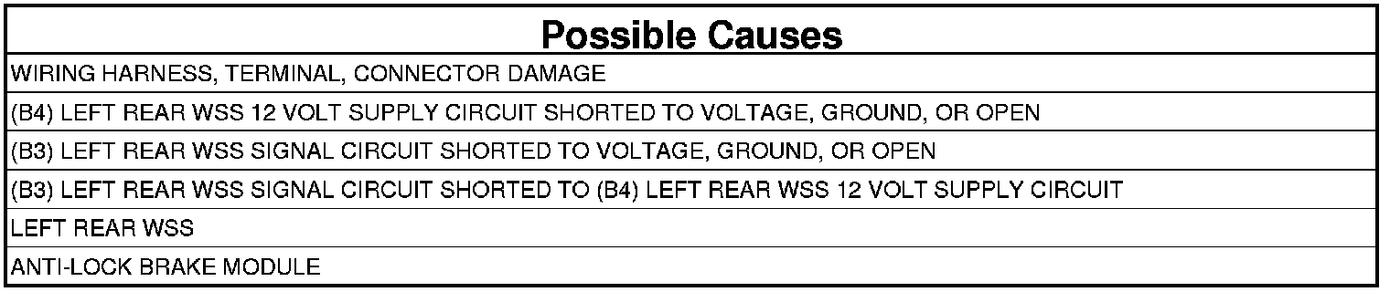 - Repair the (B3) Left Rear WSS Signal circuit for a short to voltage.