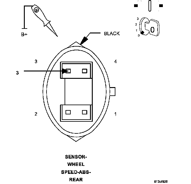 2. Using a 12-volt test light connected to 12 volts, probe the (B3) Left Rear WSS Signal circuit.