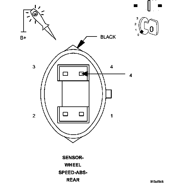 2. Using a 12-volt test light connected to 12 volts, probe the (B4) Left Rear WSS Supply circuit.