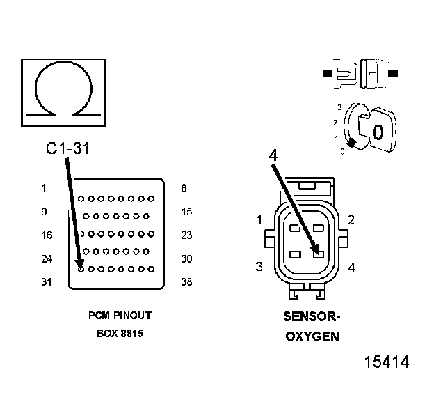 1. Using the wiring diagram/schematic as a guide, inspect the wiring and connectors between the 1/2 Oxygen Sensor and the Powertrain Control Module (PCM).
