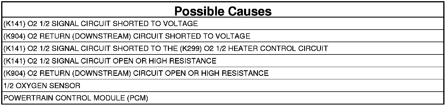 3. (K904) O2 RETURN (DOWNSTREAM) CIRCUIT SHORTED TO VOLTAGE