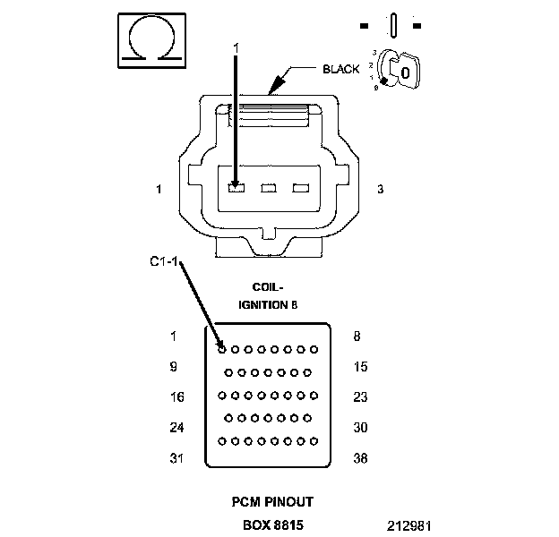 1. Measure the resistance of the (K98) Coil 8 Control circuit between the Coil On Plug 8 harness connector and the appropriate terminal of the PCM Pinout Box 8815.