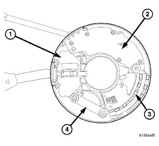 5. Install the steering angle sensor (3) and screw located at the six o'clock position.